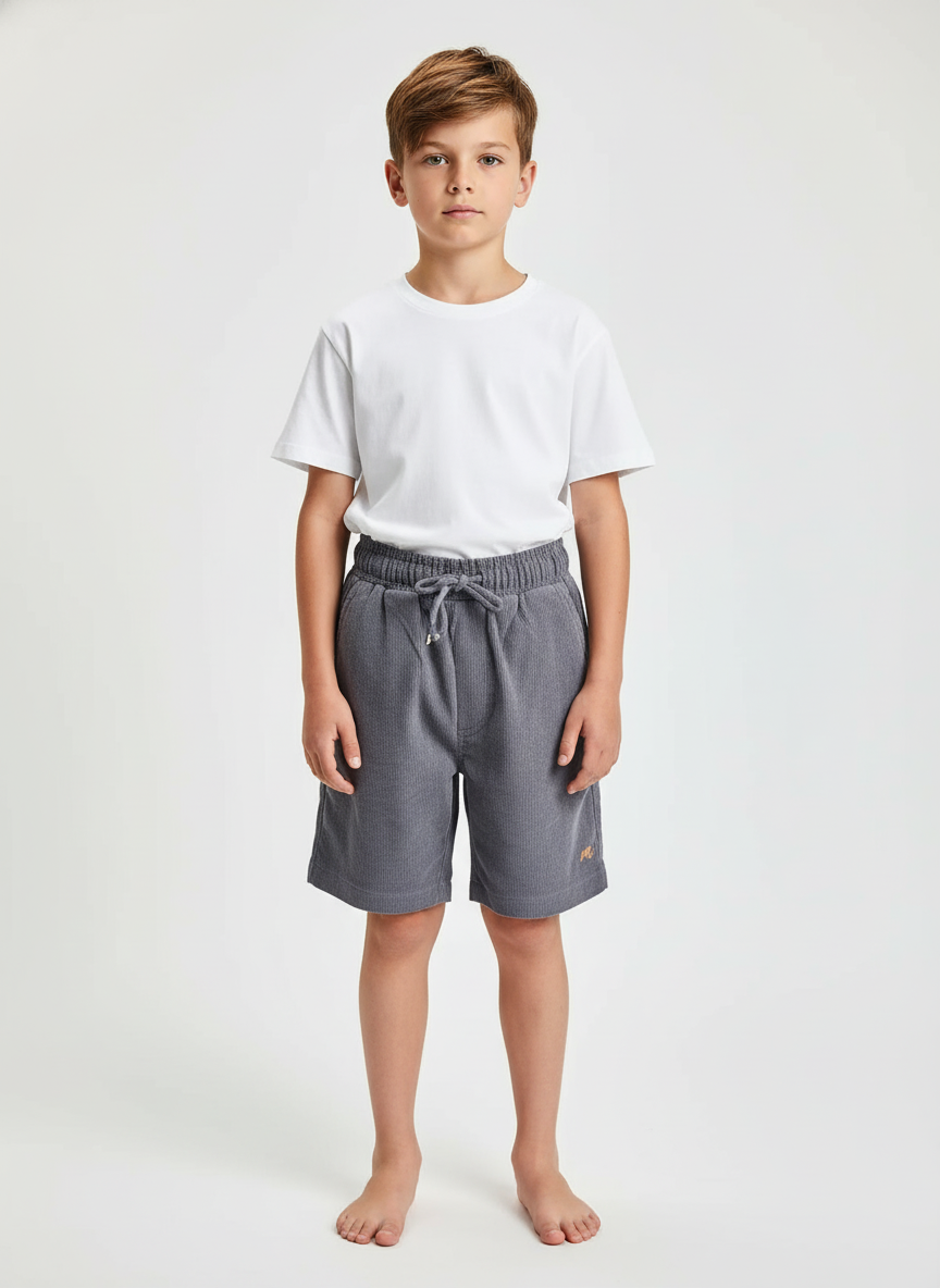 The ChillFlex Textured Knit Shorts are made for effortless comfort and cool style. Crafted from a soft, breathable knit fabric with a subtle ribbed texture, these shorts deliver the perfect balance of stretch and structure. The elastic waistband with an adjustable drawstring ensures a snug, comfy fit — ideal for all-day play or lounging in style. Finished with side pockets and a minimal embroidered logo, these shorts are your little one’s go-to for casual days with a hint of sporty flair.