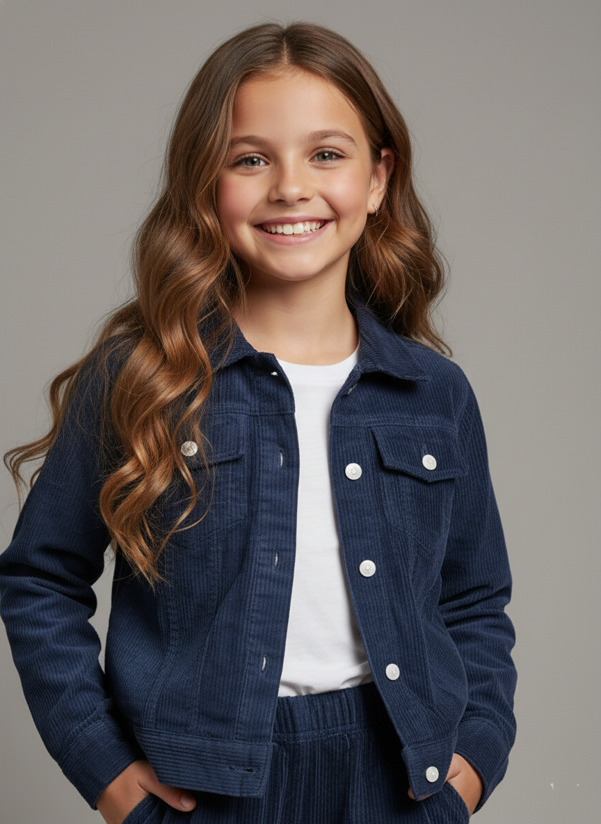 The Midnight Corduroy Co-Ord Set is where timeless style meets everyday comfort. Crafted from ultra-soft navy corduroy, this chic two-piece outfit features a structured button-up jacket with front pockets and relaxed-fit pants with an elastic waistband for easy movement. Perfect for layering over a simple tee or wearing as a complete look, it brings a cool, confident vibe to any occasion—from school days to family outings.